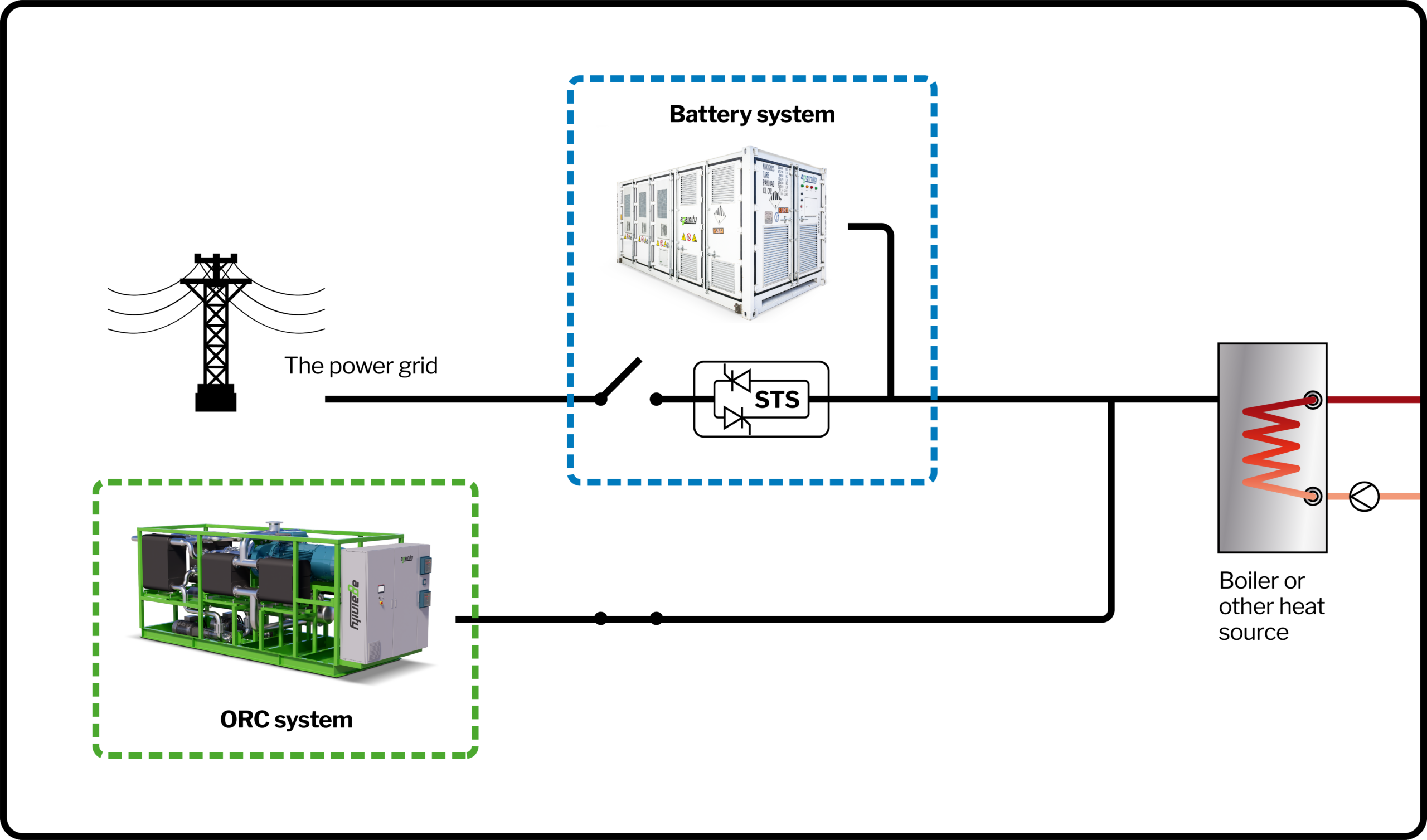Againity offers a complete, integrated solution that combines our in-house developed ORC turbines with a fully engineered battery system.